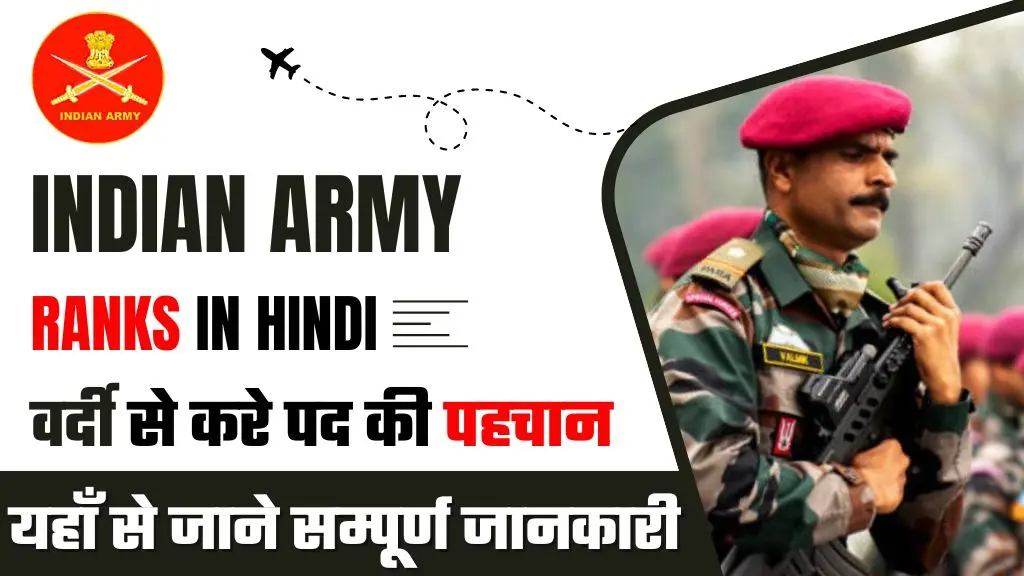 Indian Army Rank List In Hindi: इंडियन आर्मी पद और रैंक की विस्तृत जानकारी इस आर्टिकल में बतायी गयी है जिसकी जानकारी इस पद (Army Rank List) के लिए तैयारी कर रहे उम्मीदवारों को होनी चाहिए, जो इसमें अपना करियर बनाने का सपना देख रहे हैं। Indian Army Ranks List भारत में सेना की ताकत और संरचना विशाल है, सेना में शामिल होना युवाओं के बीच एक लोकप्रिय विकल्प बन गया है क्योंकि इसमें कई सुविधाएँ और सम्मानजनक करियर की संभावनाएँ होती हैं.