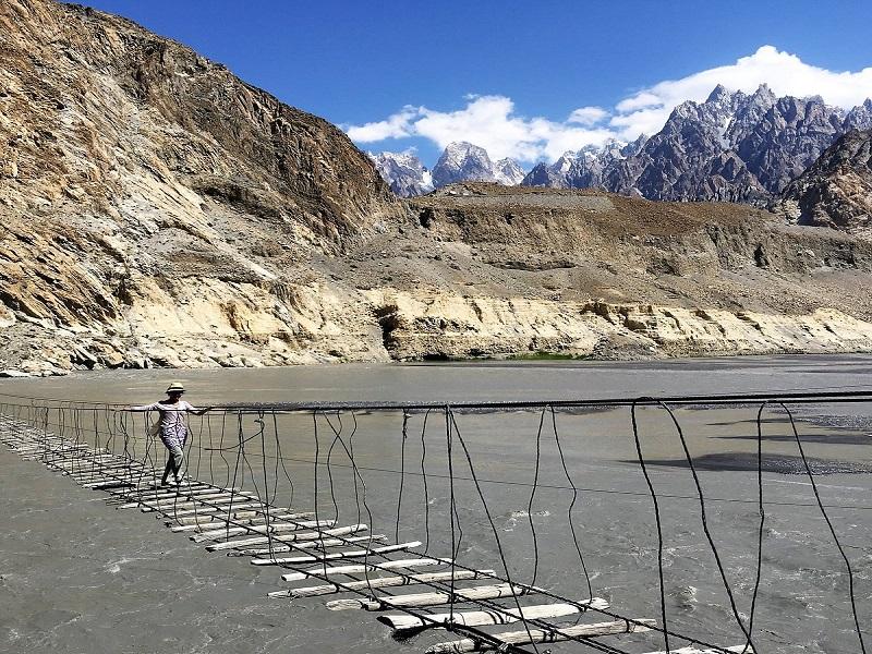 At about 100 feet above Borith Lake, this bridge still ranks as one of the most dangerous bridges in the world.Wooden slats are spaced wide apart enough for a leg to slip down and even the whole body may slip through the ropes guarding the sides.