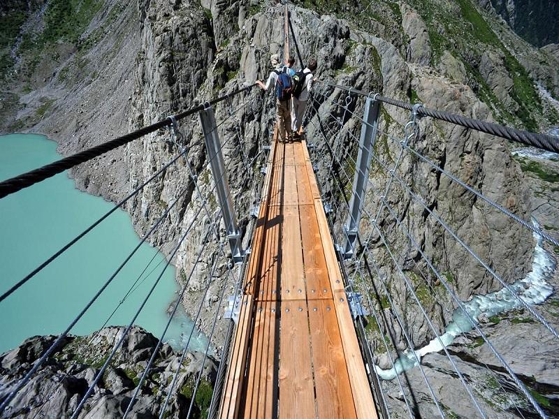 Lying suspended in the Swiss Alps Trift Bridge offers the most thrilling and breathtaking experience. It was built in 2004 but was restructured in 2009 with a safer design, yet its simple style thrills travelers. Its crossing can weaken your legs in between since it requires a cable car ride coupled with a 90-minute hike to reach the structure’s initial point.